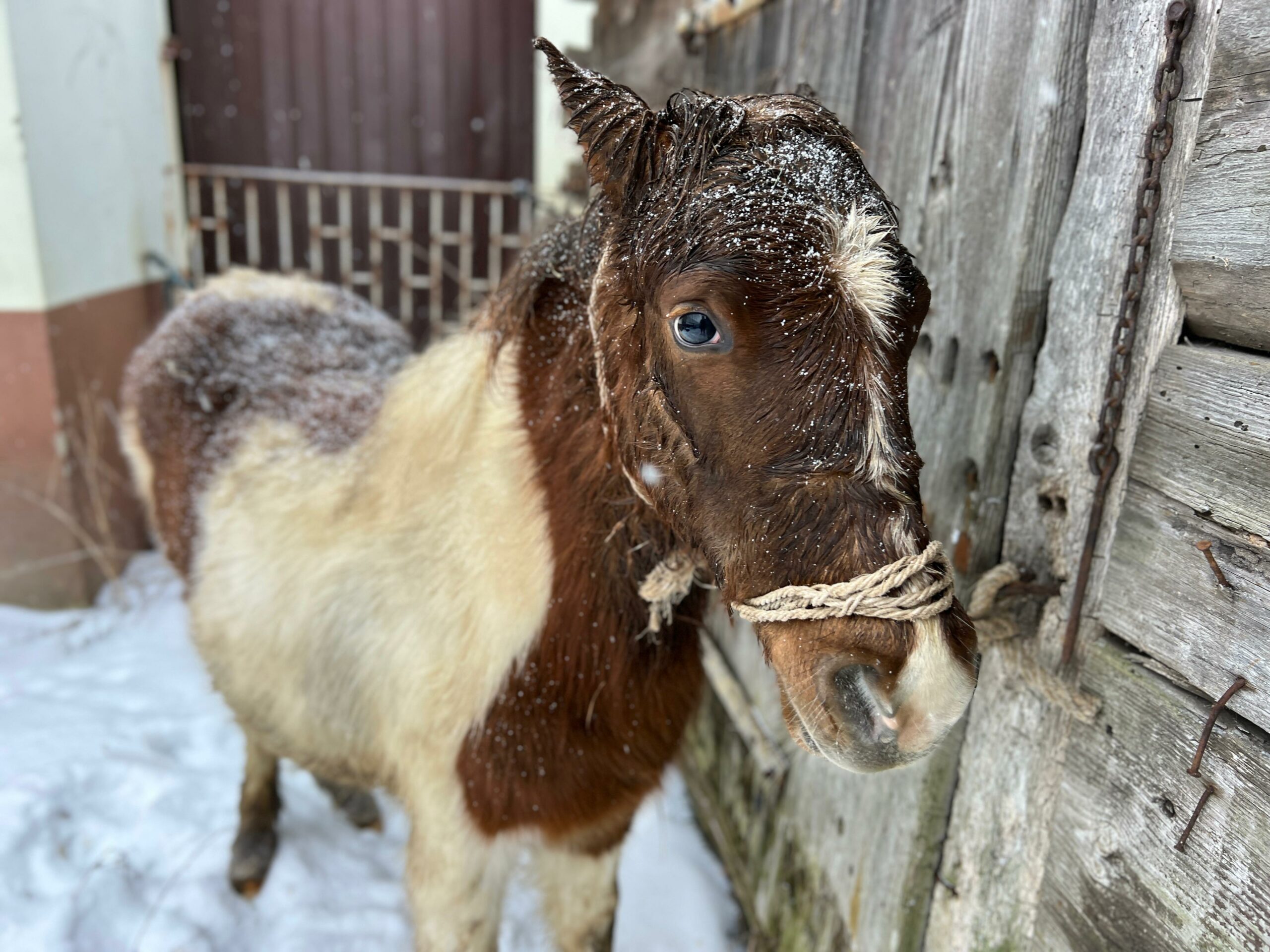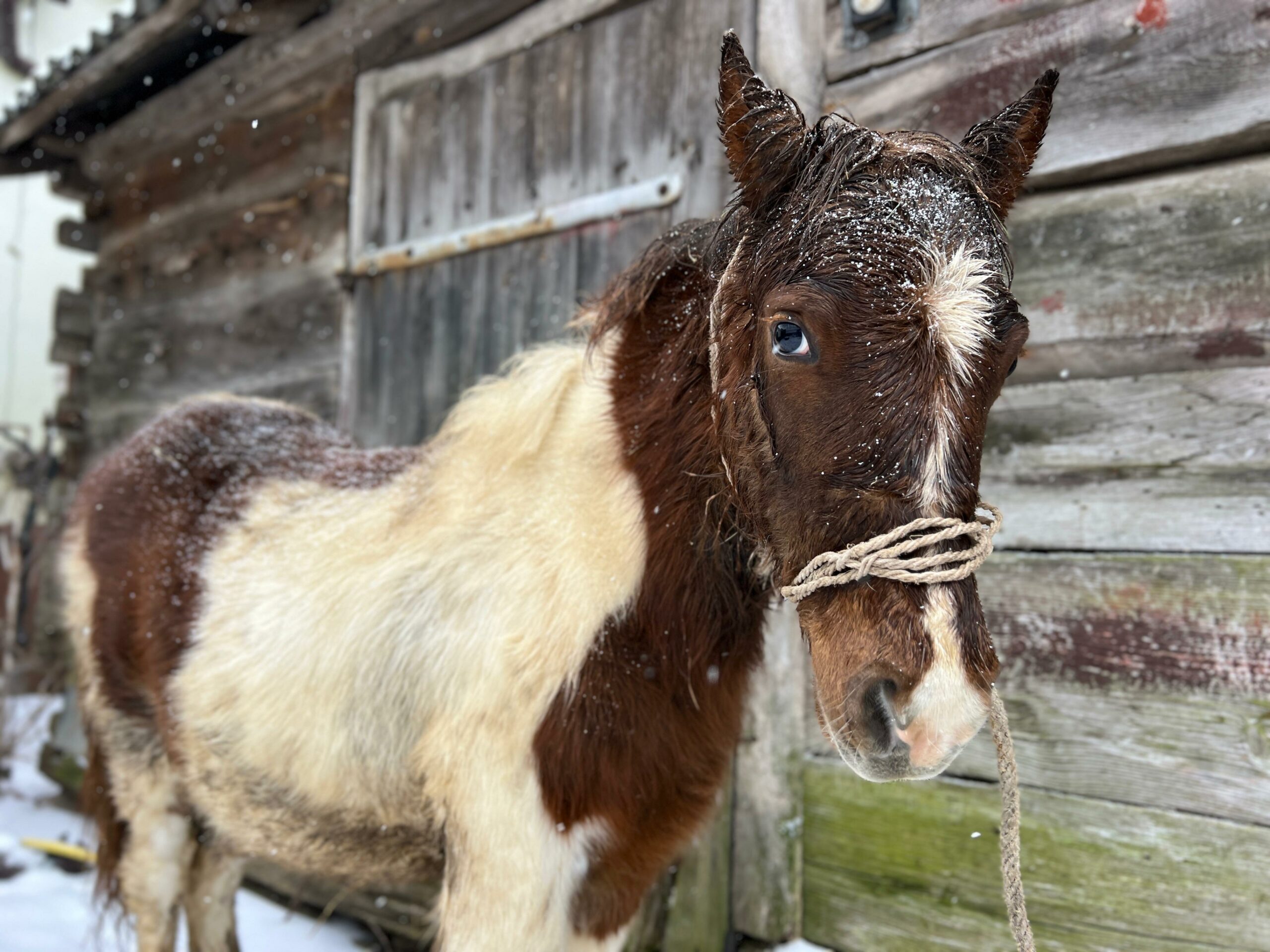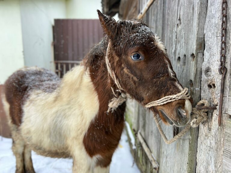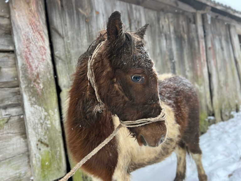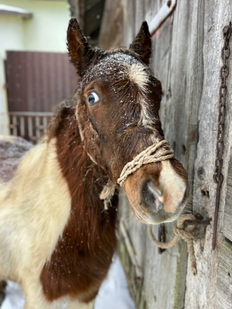 Emil encountered a story that has already struck more than a dozen of our horses. We’re always in shock for a few days after such events – but let me tell you how foolish we were, before I ask you to forgive us for our stupidity. Mr. Stefan called to ask for photos of a winter horse, preferably in the snow, waiting to die at a dealer’s. This isn’t a photo contest, and we don’t make them to order, but we kept our emotions toned down – after all, it was an opportunity, and we happened to have Emil drowning in the snow that had buried his barn and surrounding fields.