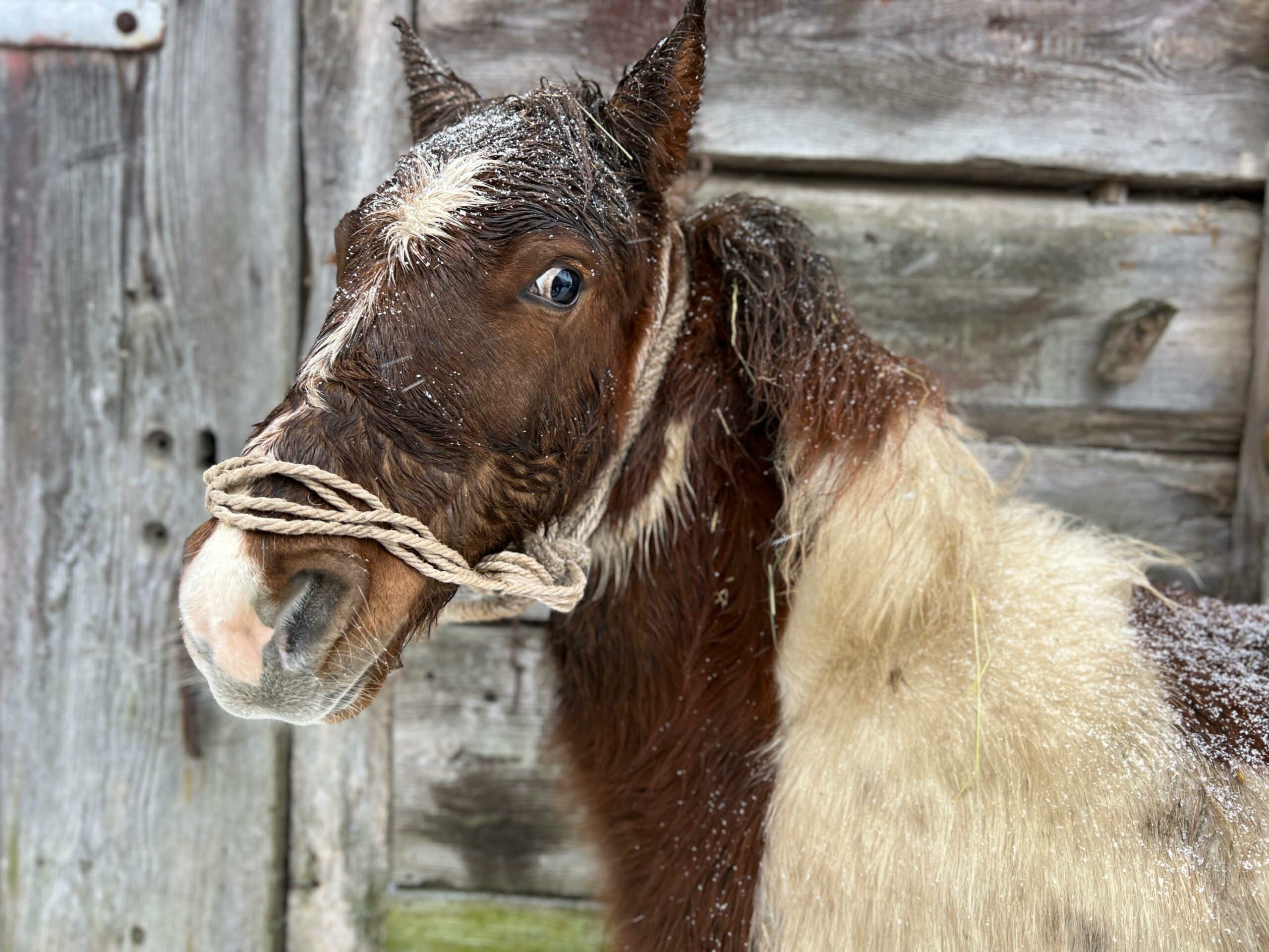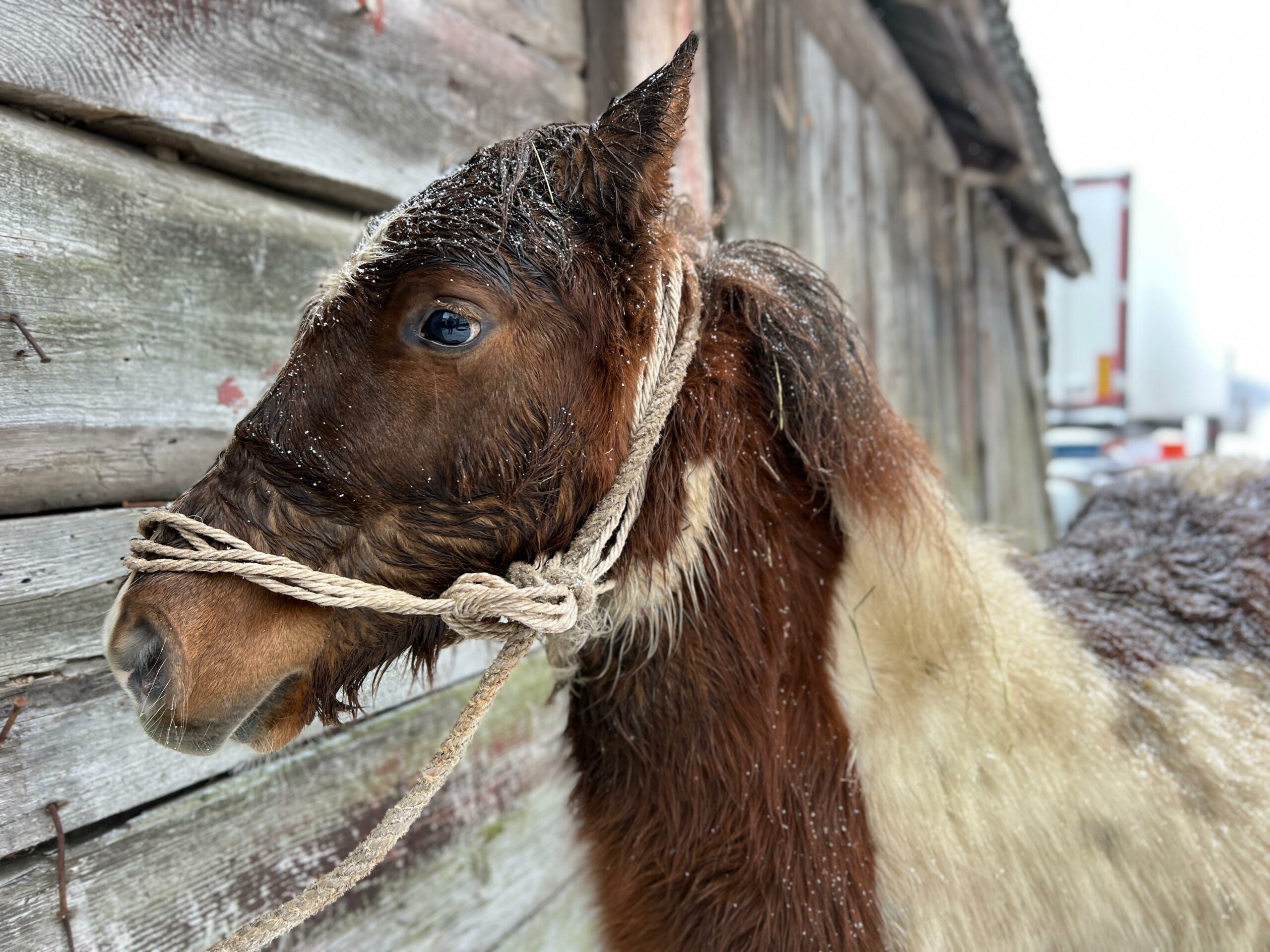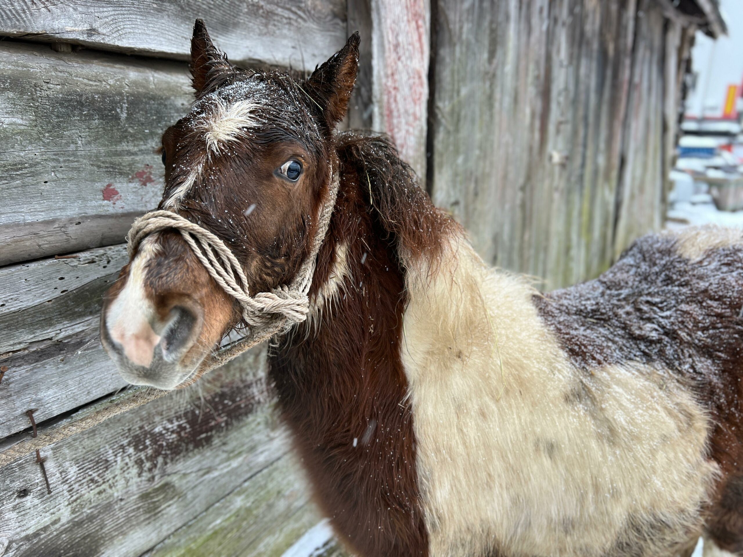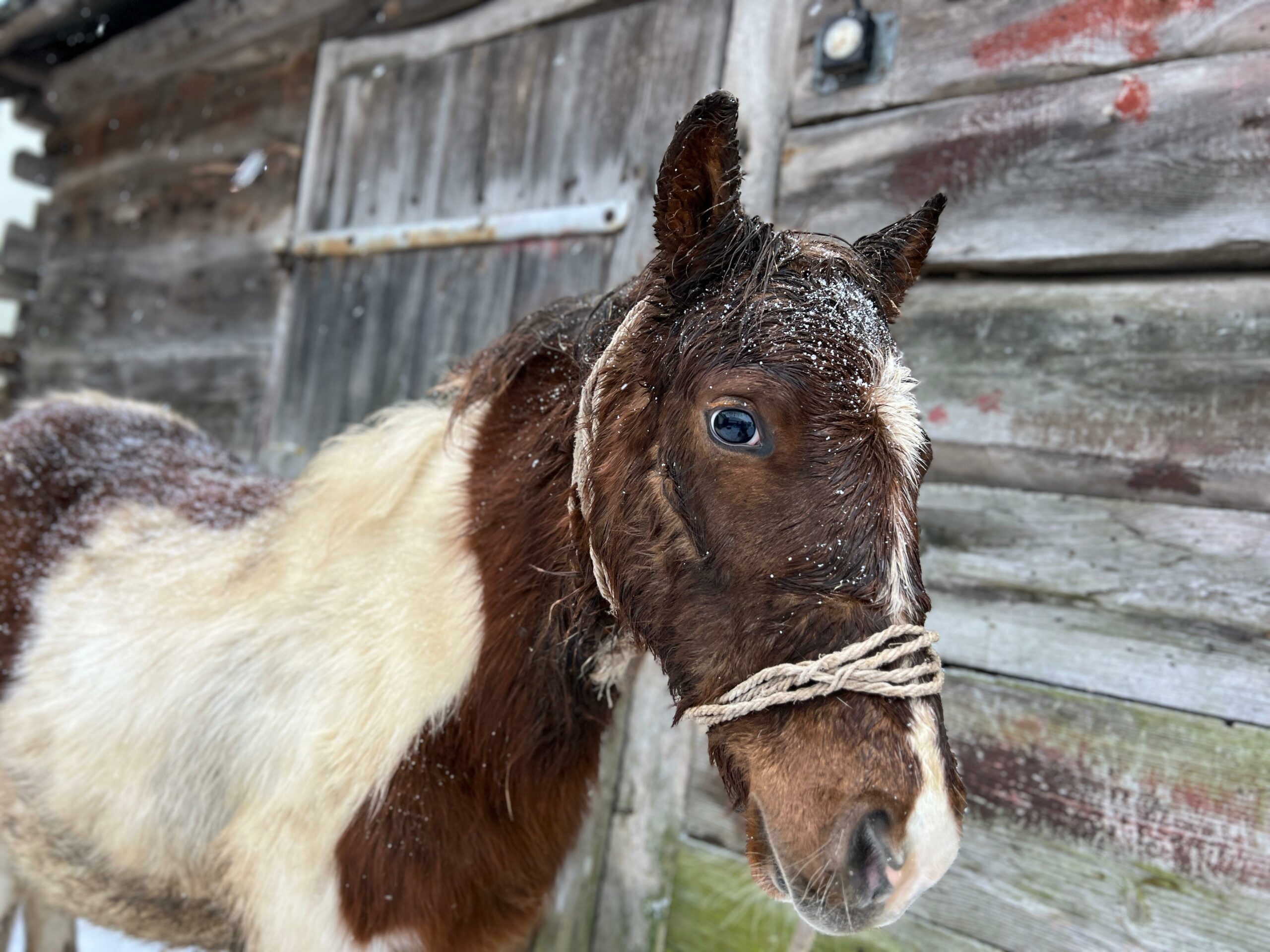 Emil encountered a story that has already struck more than a dozen of our horses. We’re always in shock for a few days after such events – but let me tell you how foolish we were, before I ask you to forgive us for our stupidity. Mr. Stefan called to ask for photos of a winter horse, preferably in the snow, waiting to die at a dealer’s. This isn’t a photo contest, and we don’t make them to order, but we kept our emotions toned down – after all, it was an opportunity, and we happened to have Emil drowning in the snow that had buried his barn and surrounding fields.