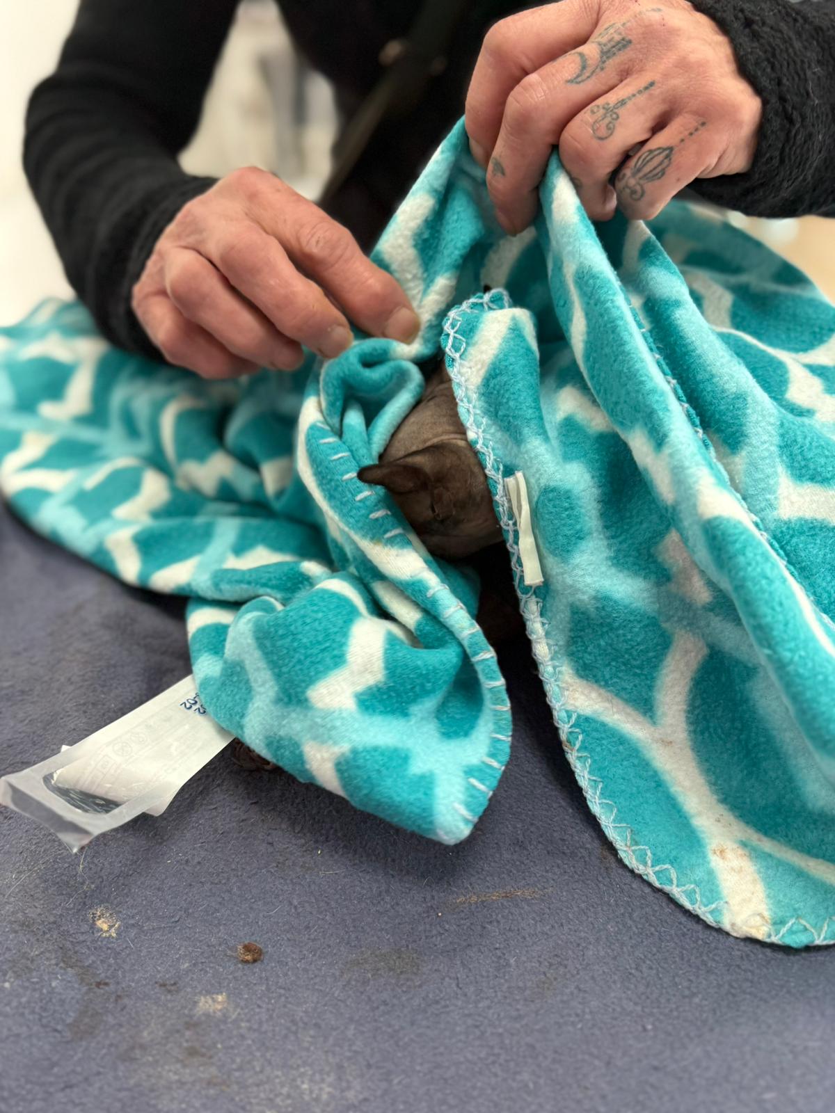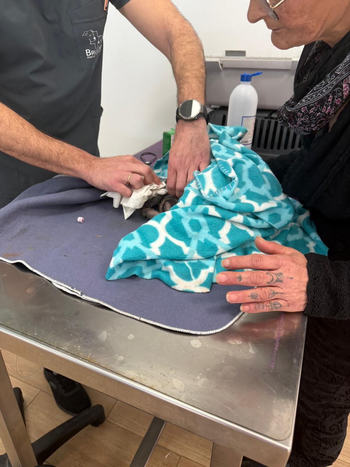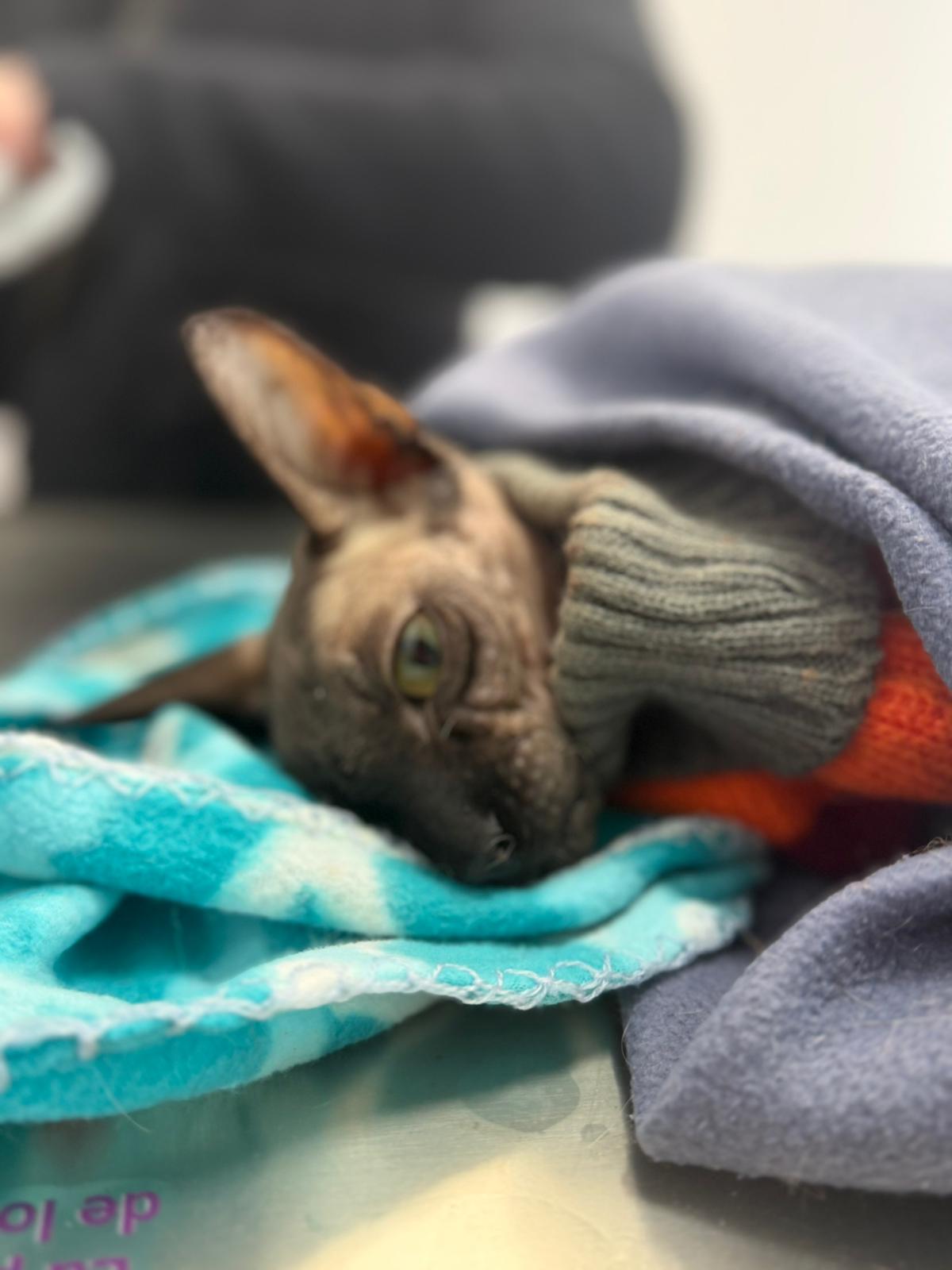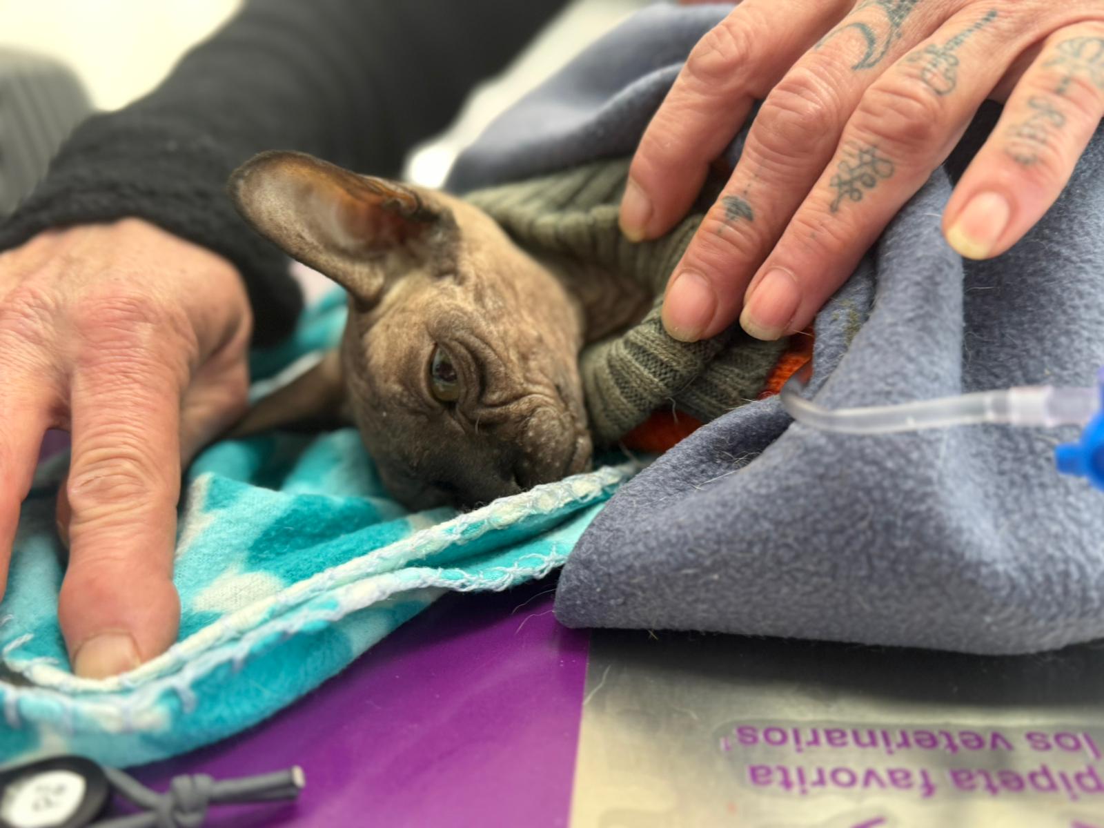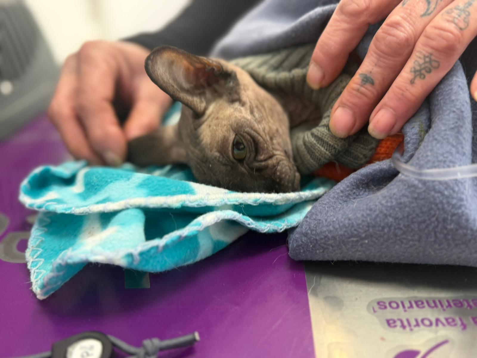 Został przyjęty na oddział zakaźny i objęty izolacją. Ma założony wenflon, otrzymuje intensywną płynoterapię, leki i stały nadzór. Lekarze zajmują się także leczeniem zmian na łapach, oczyszczaniem i terapią miejscową, aby zapobiec powikłaniom.