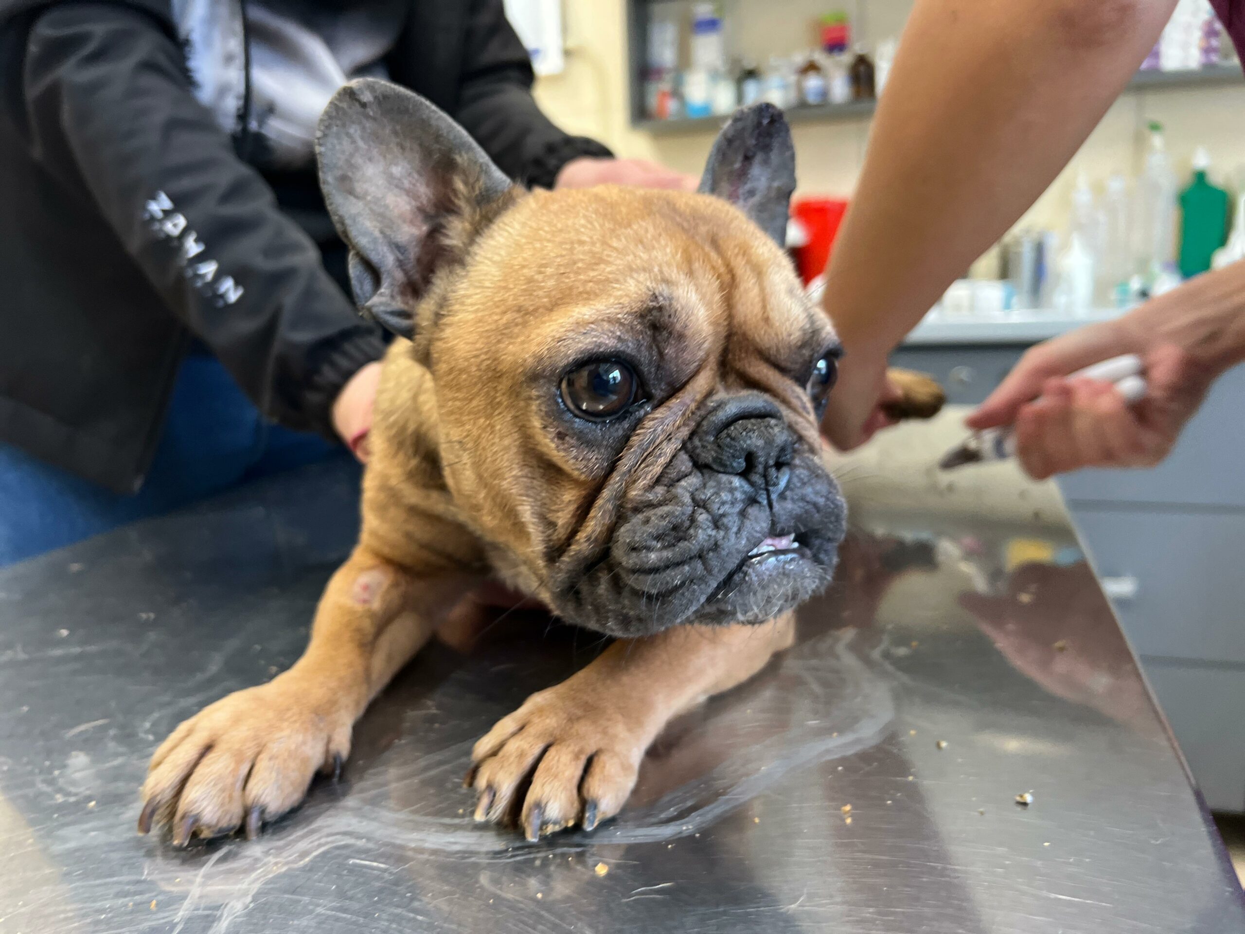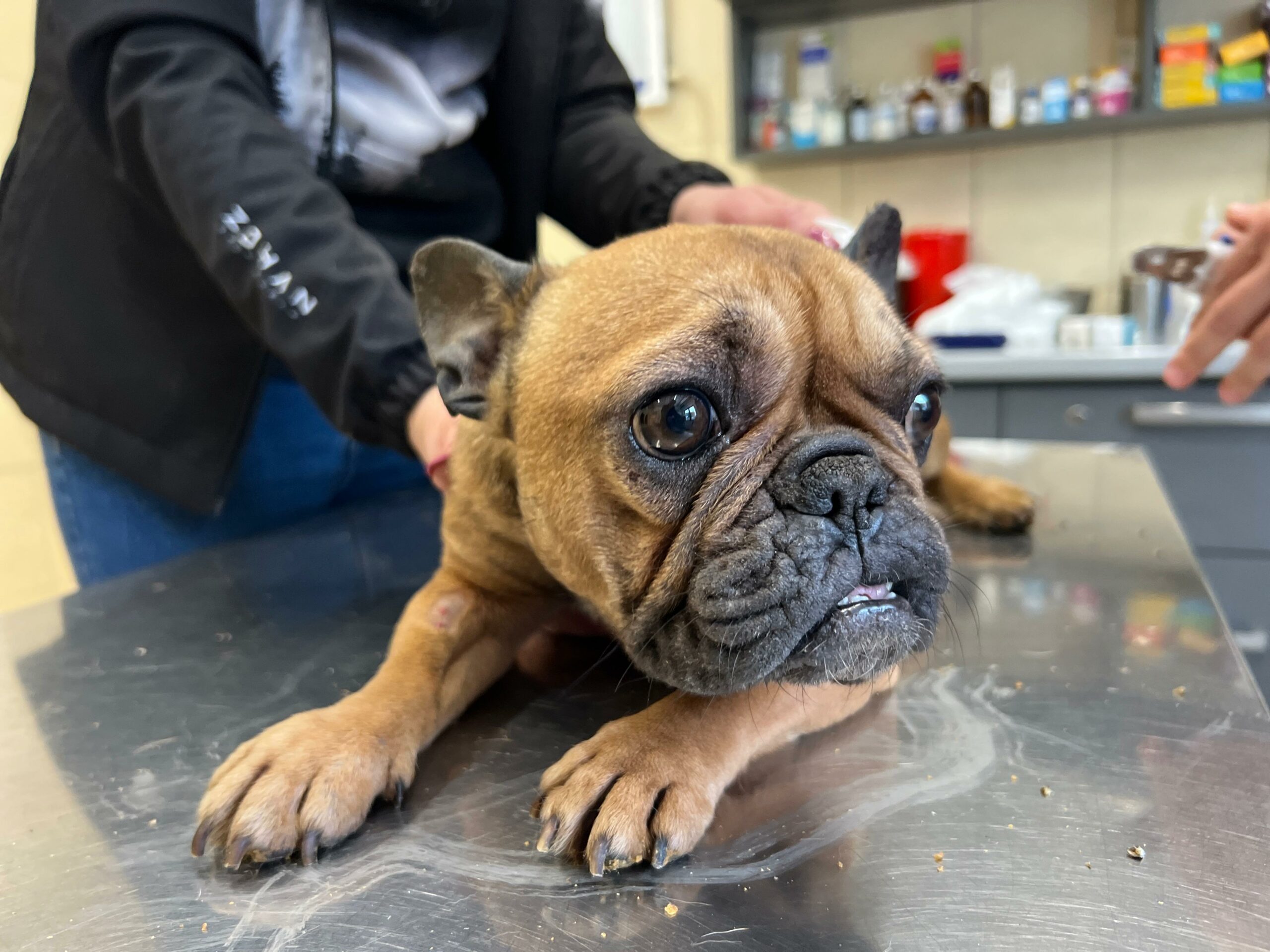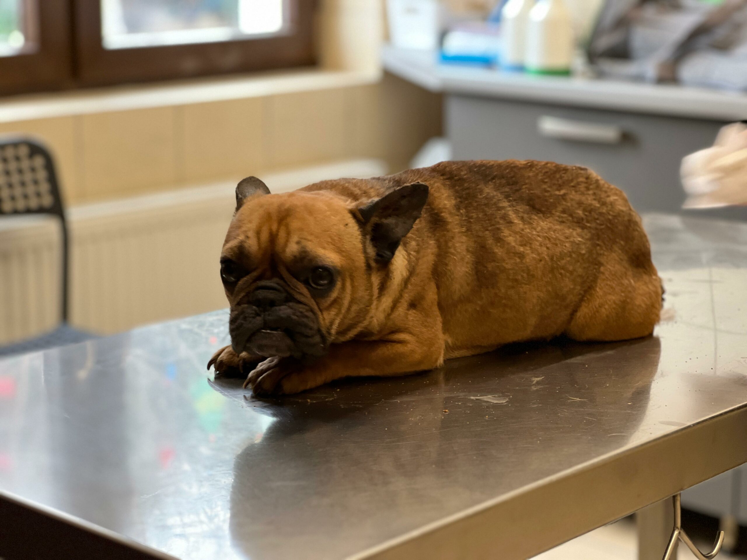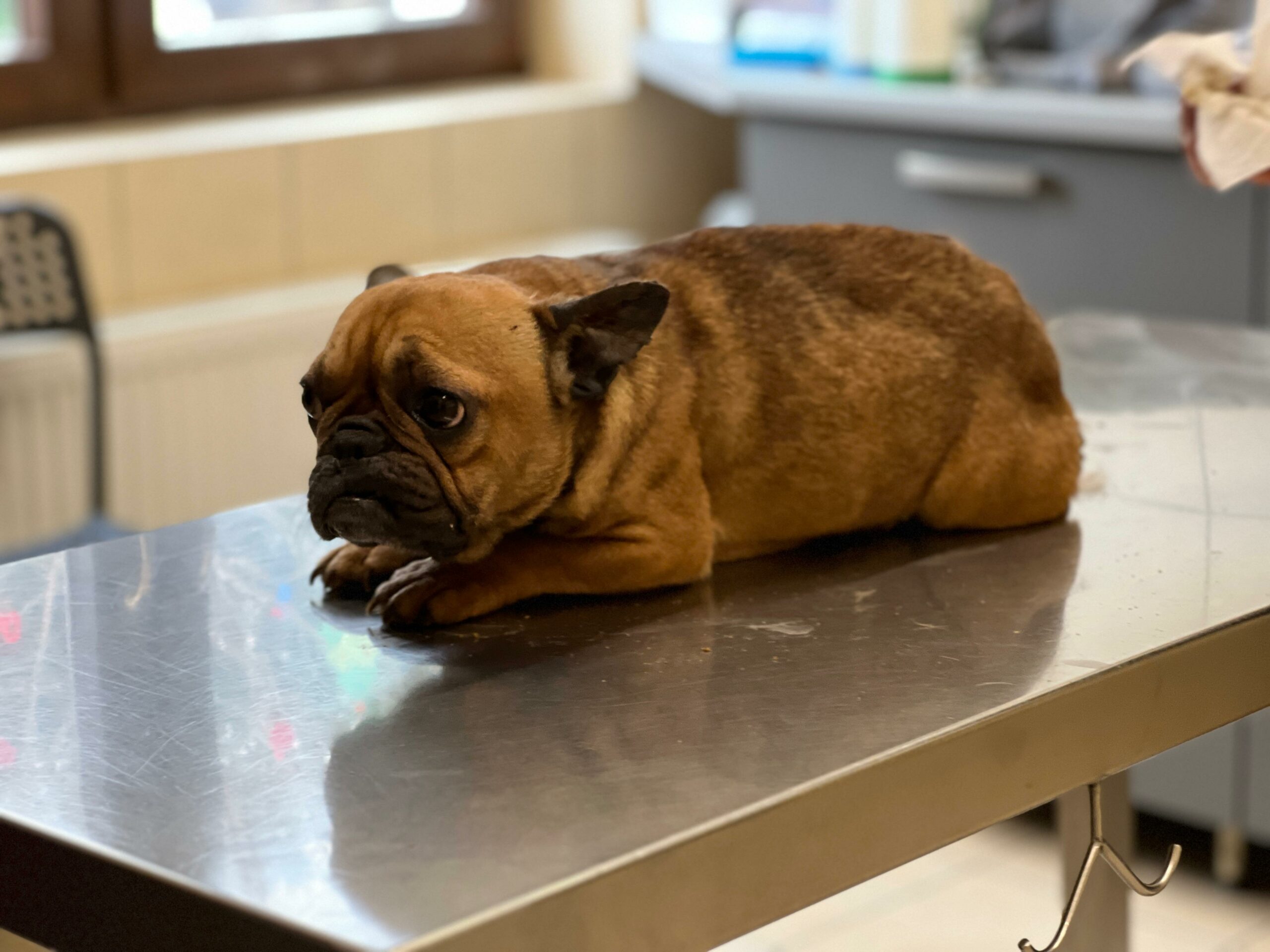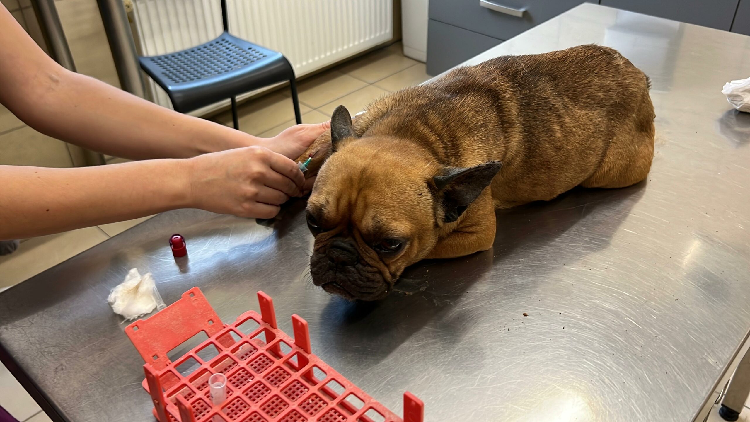 Zuzia jest stara, skrajnie zmęczona, zajechana przez życie i człowieka, wyeksploatowana do granic możliwości. Jest niedożywiona, wręcz zagłodzona, jej ciało nie ma już z czego czerpać sił. Na widok człowieka wbija się całą sobą w ziemię, pazurami, klatką piersiową, jakby chciała zniknąć, jakby wiedziała, że kontakt oznacza ból. Cała się trzęsie, drży nie tylko ze strachu, ale z wycieńczenia. Podejrzewamy przemoc, bo takie reakcje nie biorą się znikąd. Do tego dramatyczne problemy z wątrobą, bardzo silne zarobaczenie i ogólny stan ciężki. Jesteśmy w trakcie dalszej diagnostyki, bo to organizm na granicy przetrwania.
